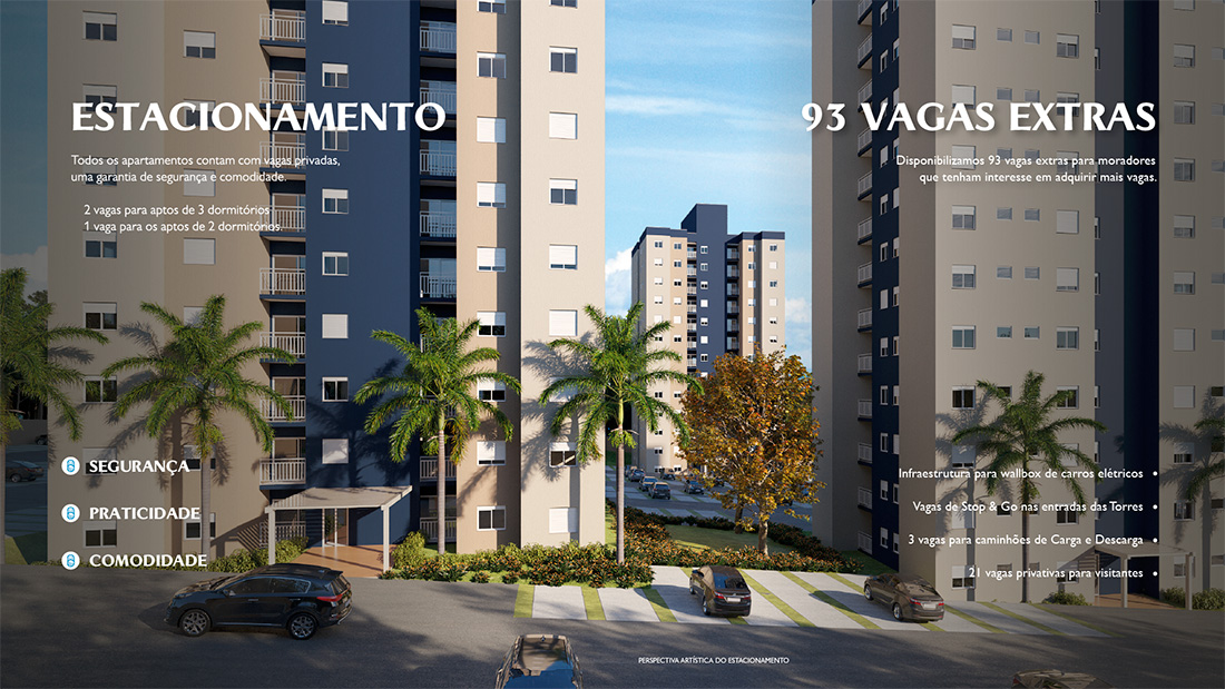 Para maior conveniência, há a opção de adquirir vagas extras de garagem durante a compra do apartamento. Um local que combina harmoniosamente natureza e comodidades modernas para uma vida equilibrada.