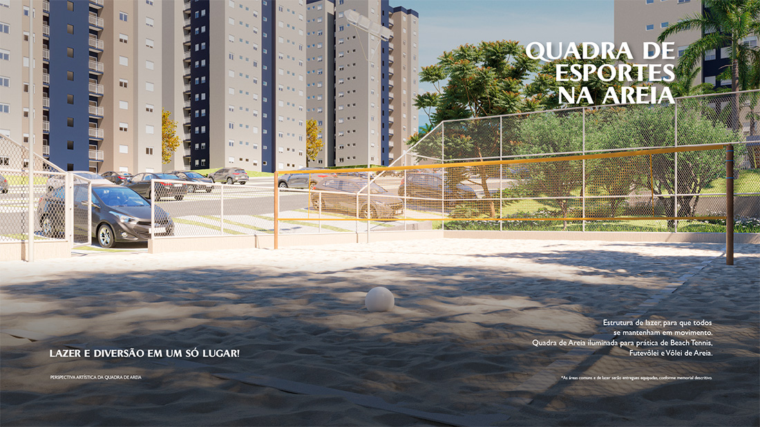 Este condomínio vertical proporciona conforto e lazer em meio à natureza, a poucos minutos do centro de Itupeva. Suas instalações incluem piscina com prainha, quadra de esportes na areia, churrasqueiras, playground, salão de festas, jogos, TV, academia, espaço pet e até infraestrutura para um mini mercado. Vagas privadas para visitantes e prestadores de serviço, portaria com segurança e 1 ou 2 vagas privadas para cada apartamento garantem comodidade.